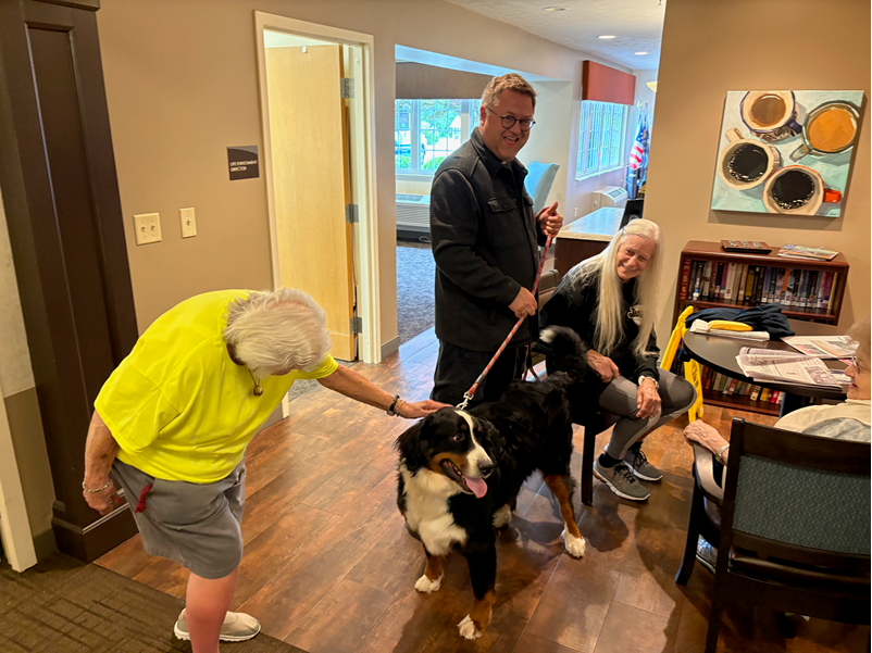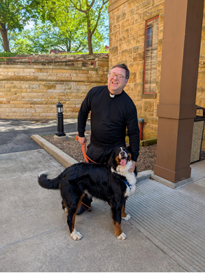 Samson is a three-year-old Bernese Mountain dog and “is a very sweet and gentle boy, a gentle giant,” Father Christian commented. According to Father Christian, he’s a bit of a “Velcro dog”—he follows obediently, making it ideal for him to help in making sick calls or greeting parishioners after Mass. “I have taken him on nursing home visits and to visit homebound parishioners.” In a spirit of humility, Father Christian quickly added, “I have discovered that one visit from Samson is worth about 10 from me in terms of lifting their spirits.” Samson does particularly well with the children in the parish. With such an amenable temperament for a diverse audience, Father Christian is attempting to get Samson certified as a therapy dog.