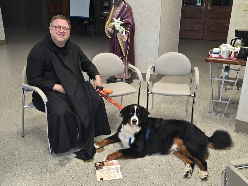 Samson has been assisting Father Christian since March 2025. The community’s previous dog, Lexi O’Divina, who was also entrusted to Father Christian’s care, went to her eternal reward in January 2025 after seven years of faithful service to Saint Meinrad Archabbey and St. Joseph Catholic Church.