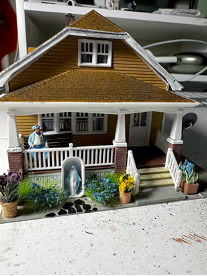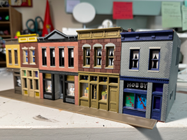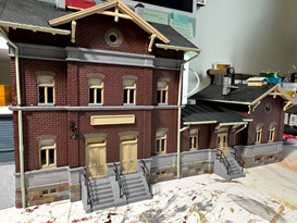 The first has been the subject of many follow-up questions from our readers—the progress on my HO scale model railroad layout. I’m happy to report that there has been much progress. Our co-workers from the Physical Facilities department have been most generous in sacrificing their time to help me with the heavy lifting and carpentry. The bench work has been assembled, and the first section (8 ft x 4 ft) has been screwed into place. We’re simply waiting on the board to stop warping before I proceed with landscaping and scenery. In the meantime, I’ve been keeping myself occupied with painting, assembling, and weathering more structures for the layout. I recently completed a pair of Hampden row houses, a staple of the city of Baltimore, as well as a train station; I also added scenery to structures I had already assembled. Please enjoy a sampling of my oeuvre thus far.
